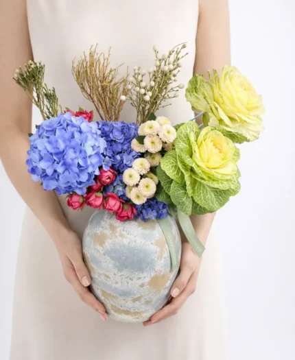 Blue Serenity Mixed Flower Bouquet – Hydrangea, Roses & Seasonal Blooms