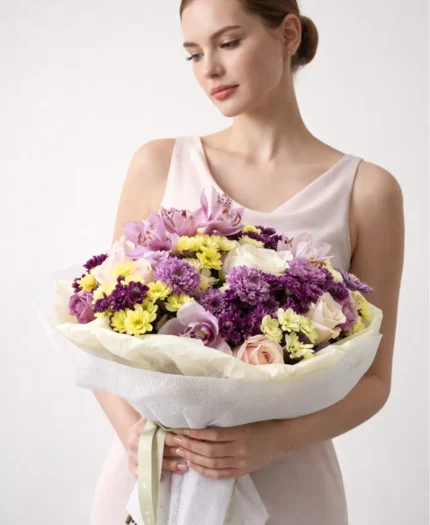 Blush Harmony Bouquet – Orchids, Roses & Chrysanthemums