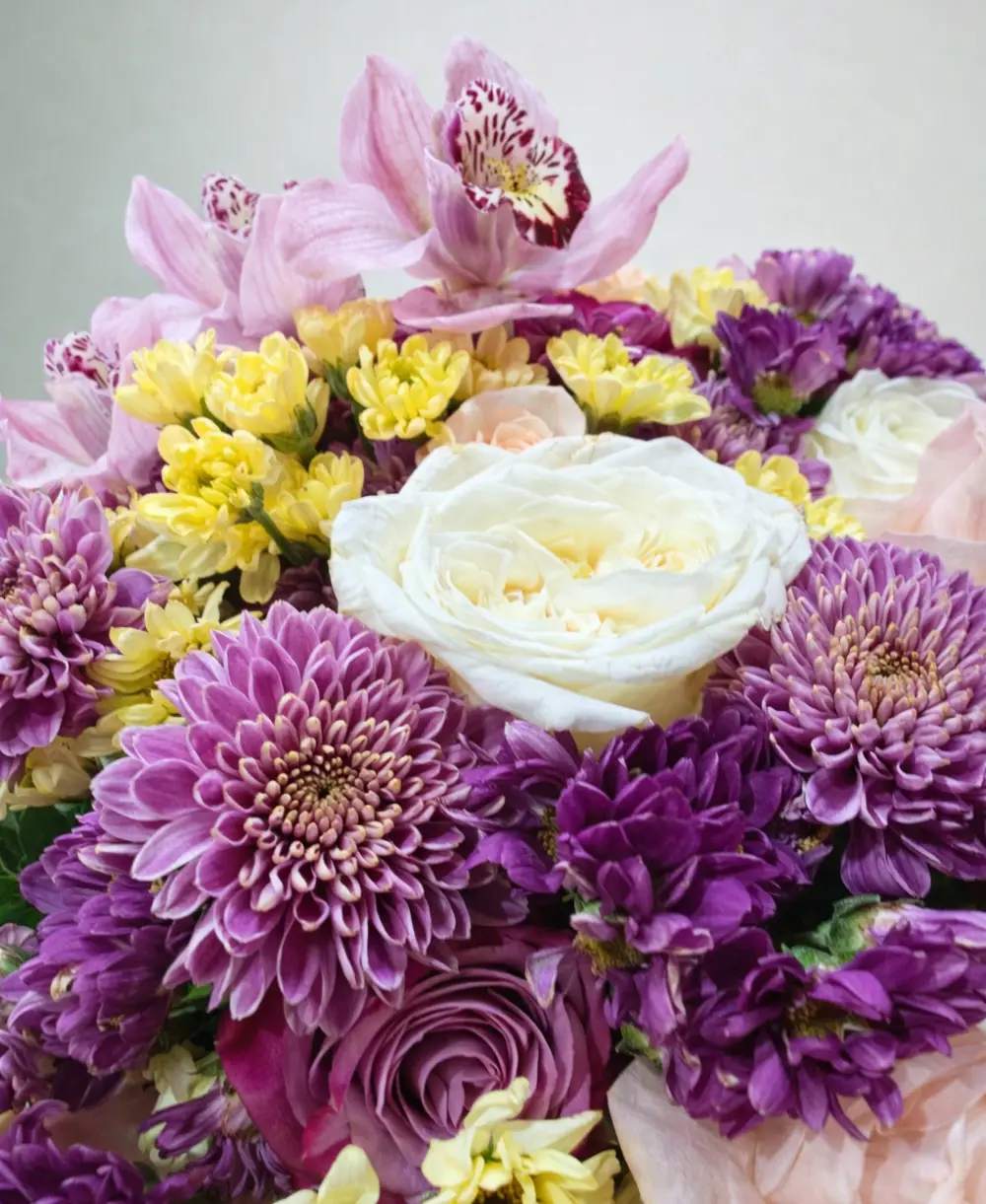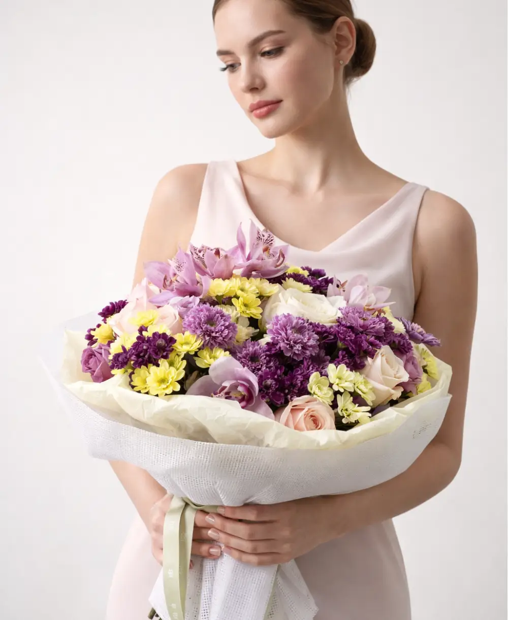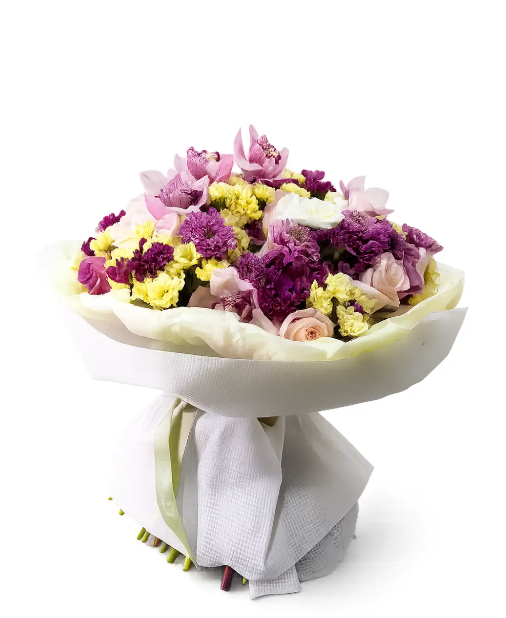 A delicate blend of orchids, roses, and chrysanthemums, this bouquet exudes elegance and gentle charm—perfect for celebrating love, friendship, or special moments.